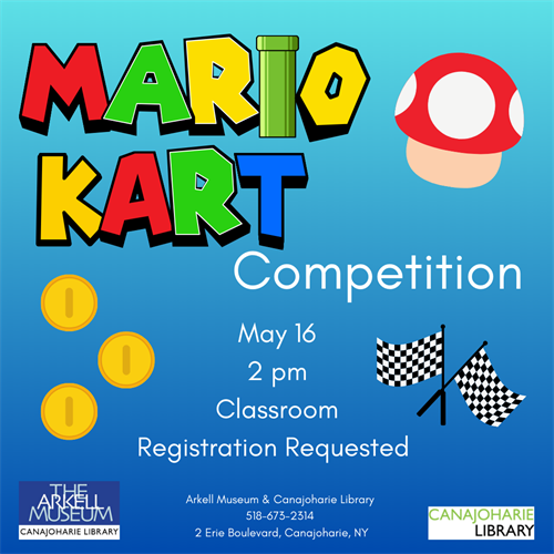 Join us on May 16th at 2 pm in the classroom of the Arkell Museum and Canajoharie Library for a Mario Kart Competition. We’ve got a Switch all set up and ready for you to battle your friends across the finish line.